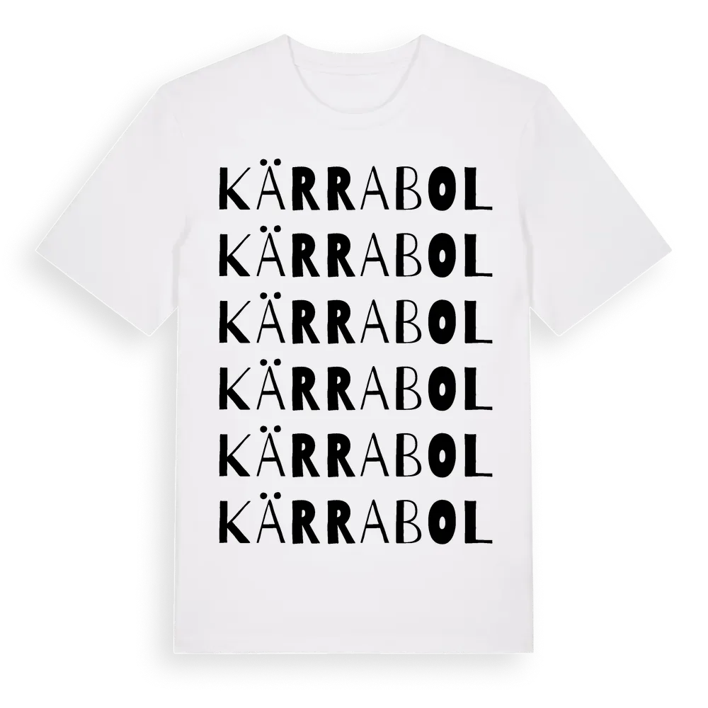 Kärrabol ordlek t-shirt är inspirerad av byn Kärrabol i Blekinge län, Sverige. Tröjan är designad för dig som har en speciell koppling till platsen – oavsett om du bor här, har rötterna här eller bara älskar Kärrabol.