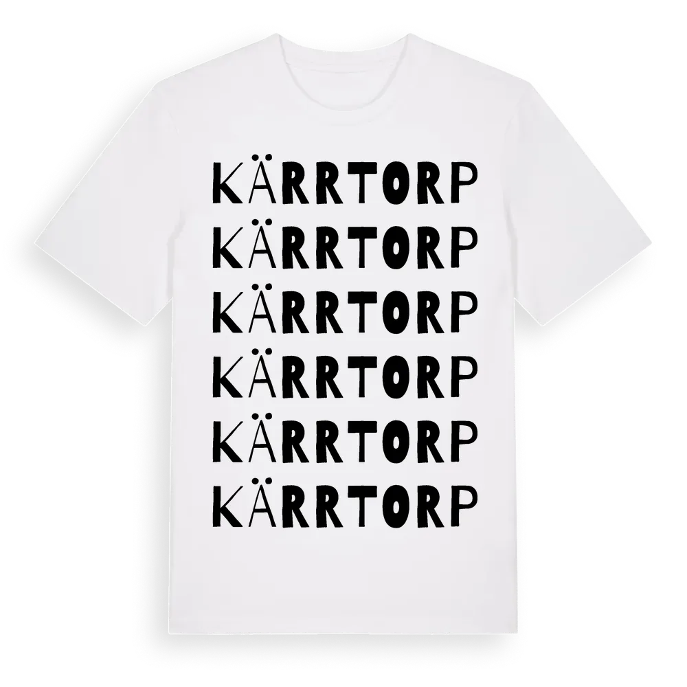 En ordlek byggd på Kärrtorps namn. Subtilt och klurig – ett motiv som bara de som verkligen känner platsen fullt ut förstår. Premium bomull, unisex – från Kärrtorp i Blekinge län.