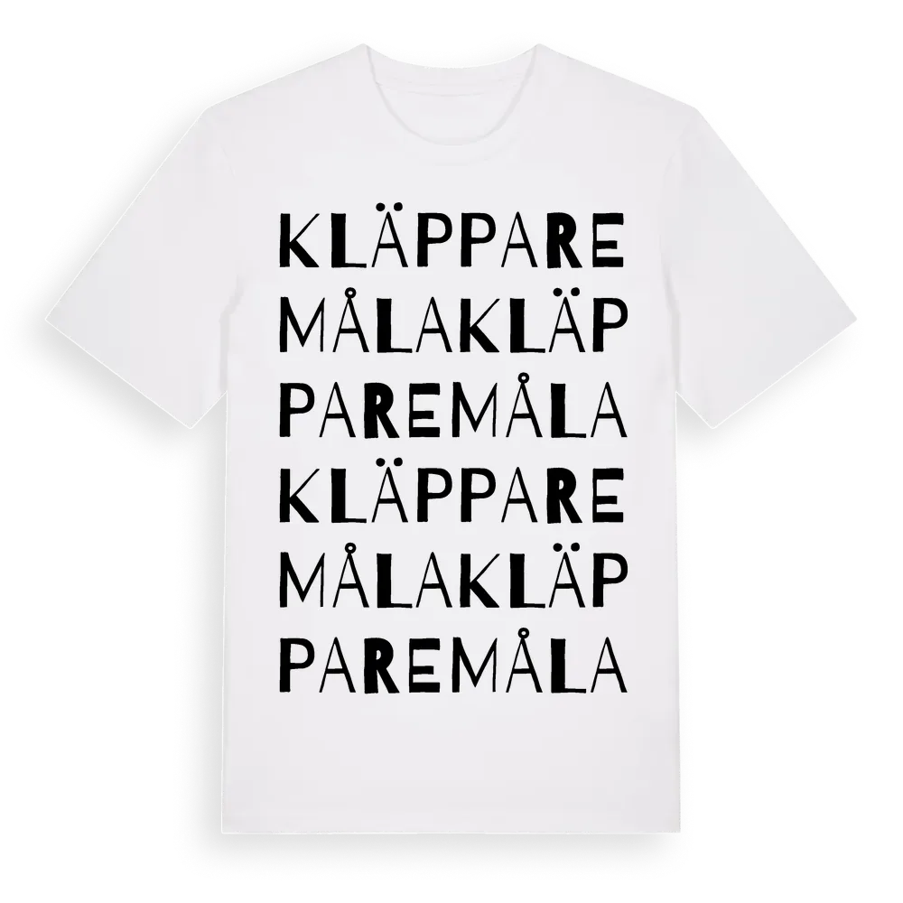 Kläpparemåla ordlek t-shirt är inspirerad av byn Kläpparemåla i Blekinge län, Sverige. Tröjan är designad för dig som har en speciell koppling till platsen – oavsett om du bor här, har rötterna här eller bara älskar Kläpparemåla.