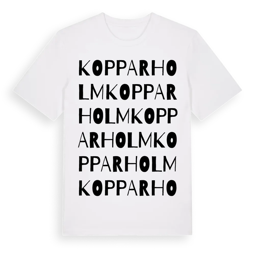 Kopparholm ordlek t-shirt är inspirerad av Kopparholm i Blekinge län, Sverige. Tröjan är designad för dig som har en speciell koppling till platsen – oavsett om du bor här, har rötterna här eller bara älskar Kopparholm.