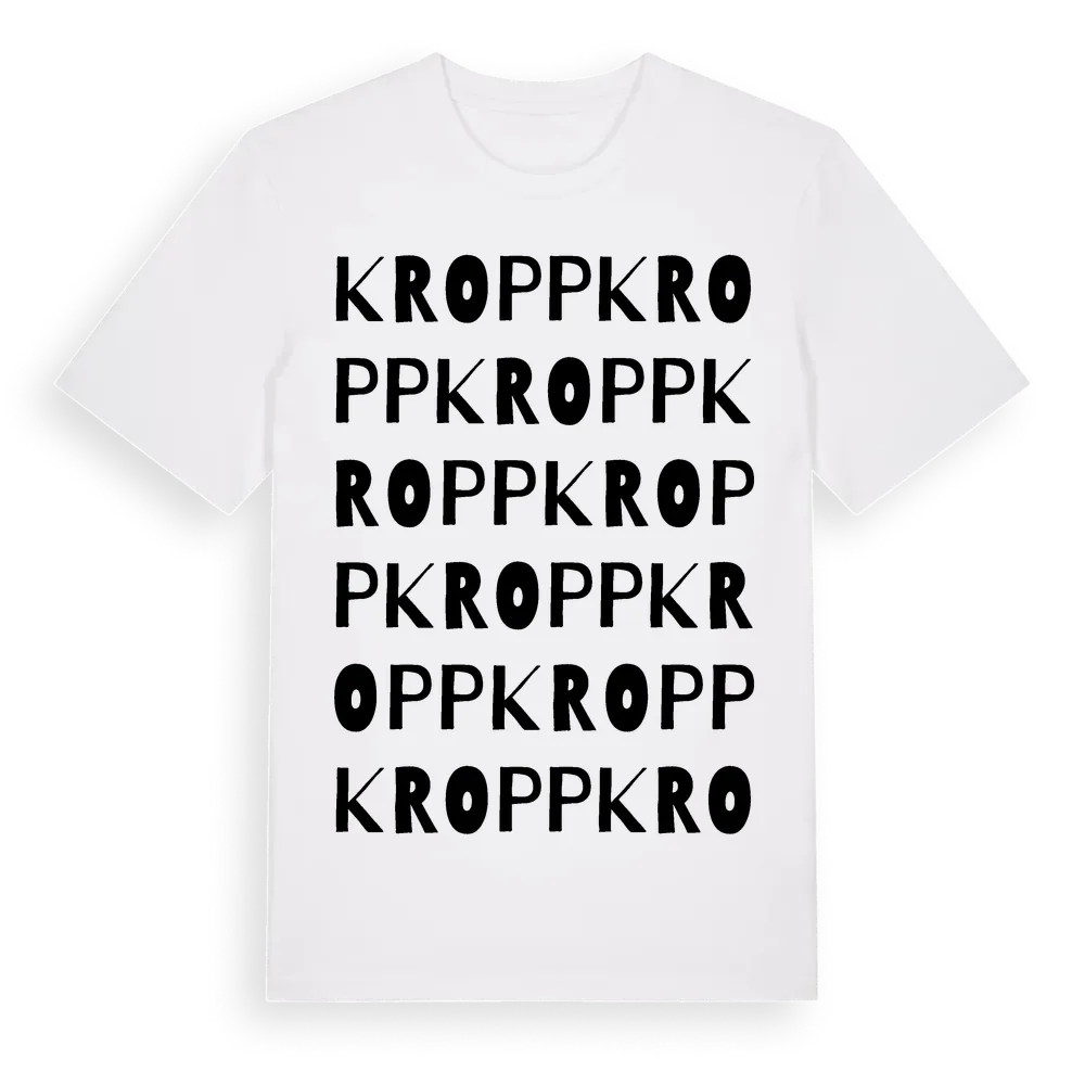 Kropp ordlek t-shirt är inspirerad av byn Kropp i Blekinge län, Sverige. Tröjan är designad för dig som har en speciell koppling till platsen – oavsett om du bor här, har rötterna här eller bara älskar Kropp.