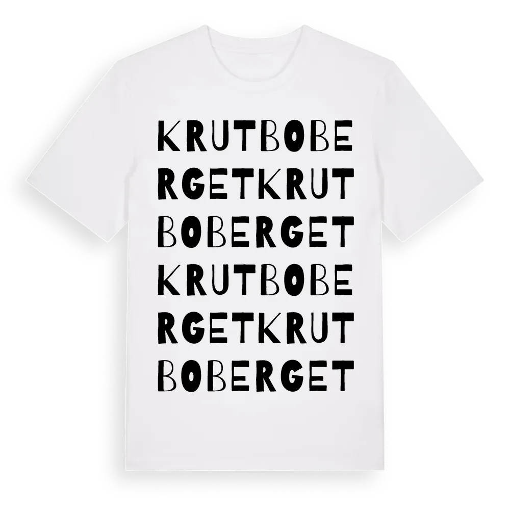 Krutboberget ordlek t-shirt är inspirerad av Krutboberget i Blekinge län, Sverige. Tröjan är designad för dig som har en speciell koppling till platsen – oavsett om du bor här, har rötterna här eller bara älskar Krutboberget.