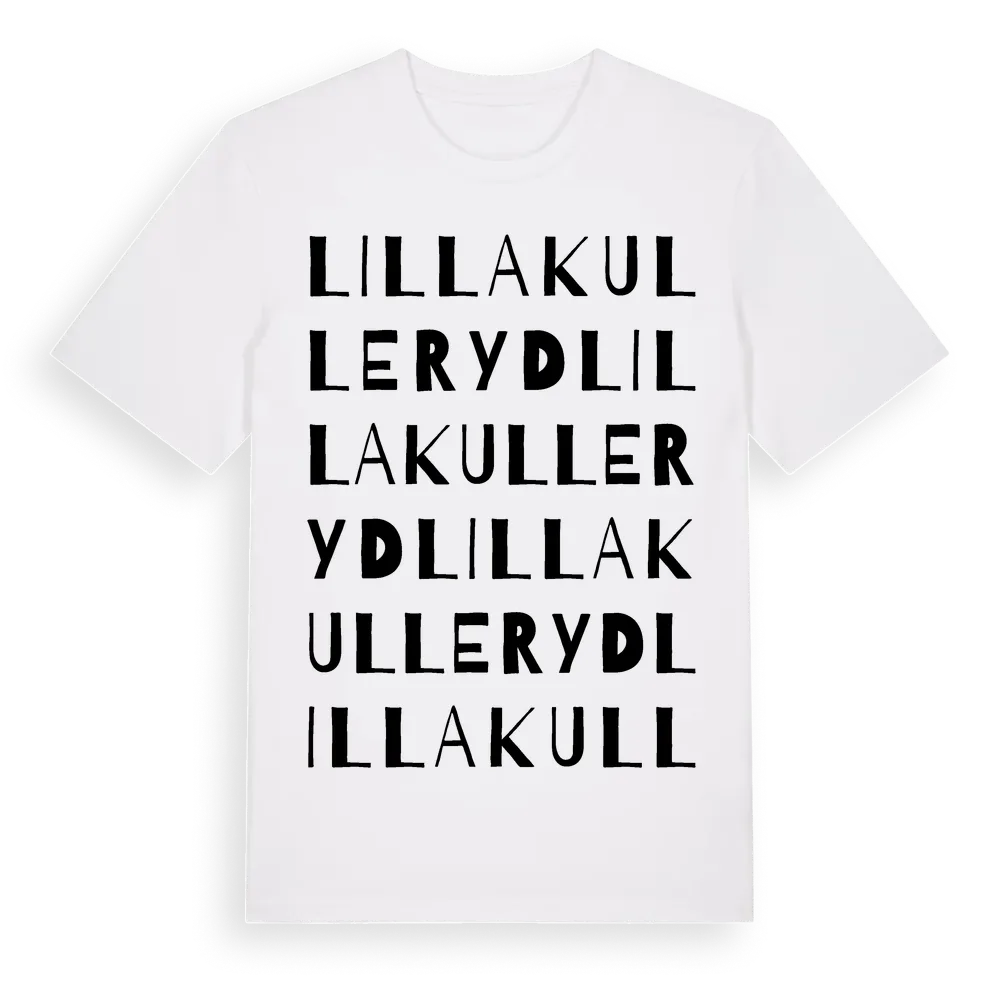 Lilla Kulleryd ordlek t-shirt är inspirerad av byn Lilla Kulleryd i Blekinge län, Sverige. Tröjan är designad för dig som har en speciell koppling till platsen – oavsett om du bor här, har rötterna här eller bara älskar Lilla Kulleryd.