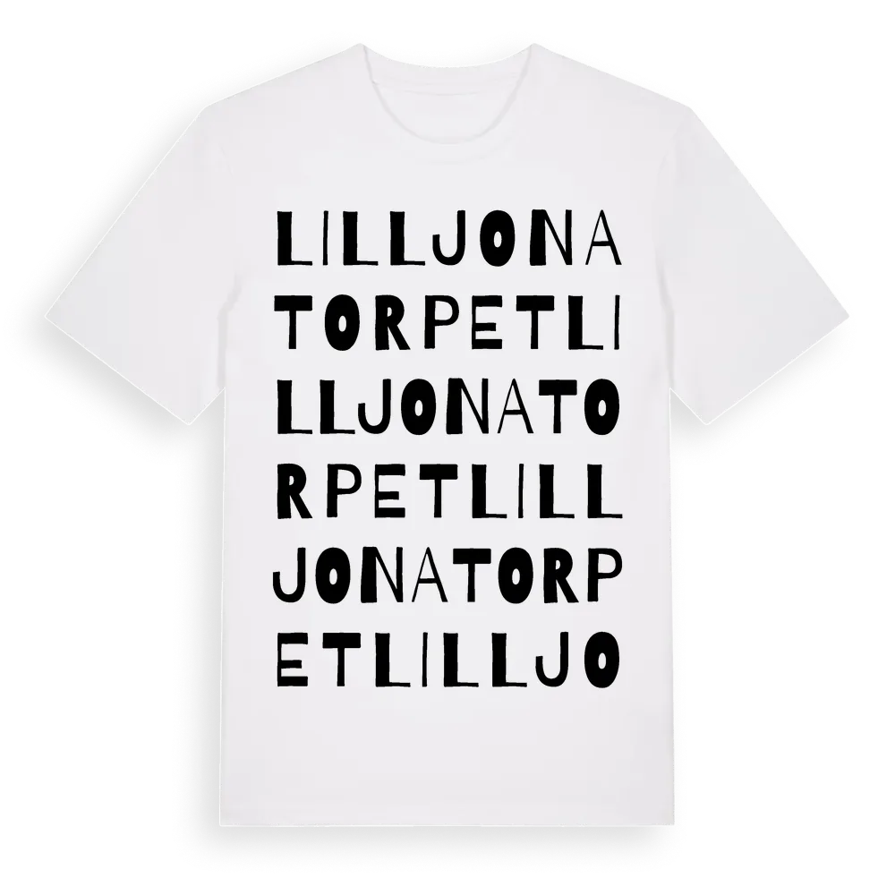Lilljonatorpet ordlek t-shirt är inspirerad av Lilljonatorpet i Blekinge län, Sverige. Tröjan är designad för dig som har en speciell koppling till platsen – oavsett om du bor här, har rötterna här eller bara älskar Lilljonatorpet.