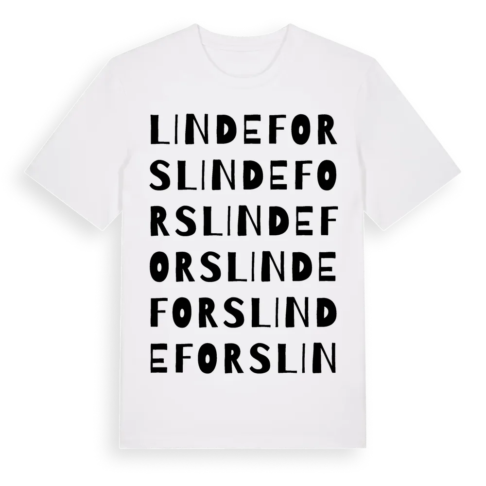 Lindefors ordlek t-shirt är inspirerad av Lindefors i Blekinge län, Sverige. Tröjan är designad för dig som har en speciell koppling till platsen – oavsett om du bor här, har rötterna här eller bara älskar Lindefors.