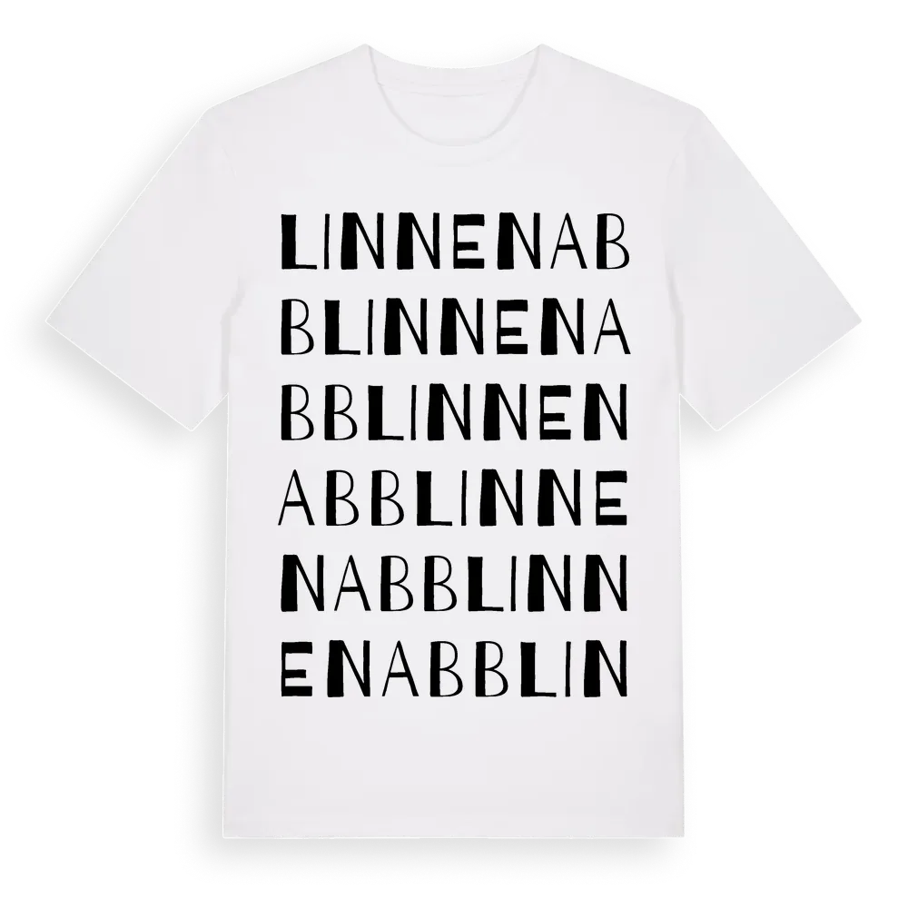 Linne Nabb ordlek t-shirt är inspirerad av Linne Nabb i Blekinge län, Sverige. Tröjan är designad för dig som har en speciell koppling till platsen – oavsett om du bor här, har rötterna här eller bara älskar Linne Nabb.