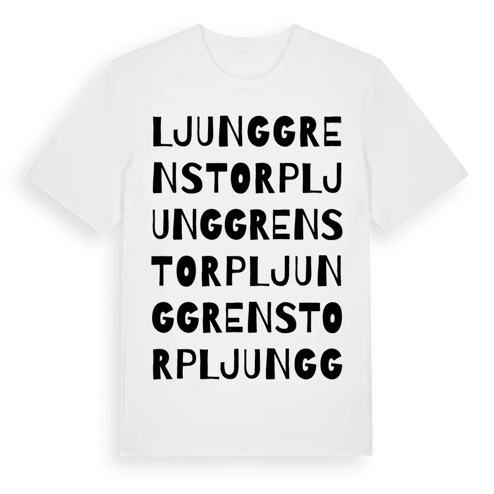 Ljunggrenstorp ordlek t-shirt är inspirerad av Ljunggrenstorp i Blekinge län, Sverige. Tröjan är designad för dig som har en speciell koppling till platsen – oavsett om du bor här, har rötterna här eller bara älskar Ljunggrenstorp.