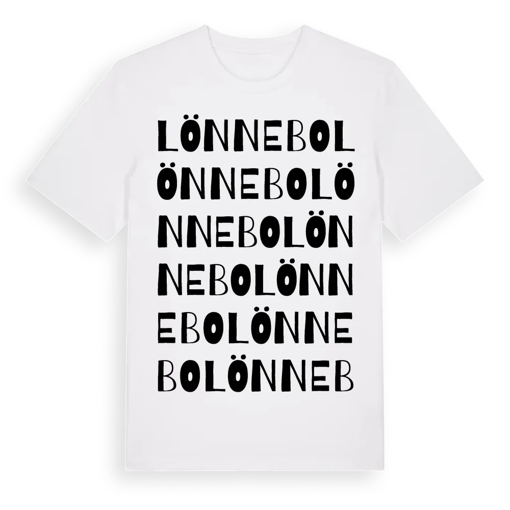 Lönnebo ordlek t-shirt är inspirerad av Lönnebo i Blekinge län, Sverige. Tröjan är designad för dig som har en speciell koppling till platsen – oavsett om du bor här, har rötterna här eller bara älskar Lönnebo.