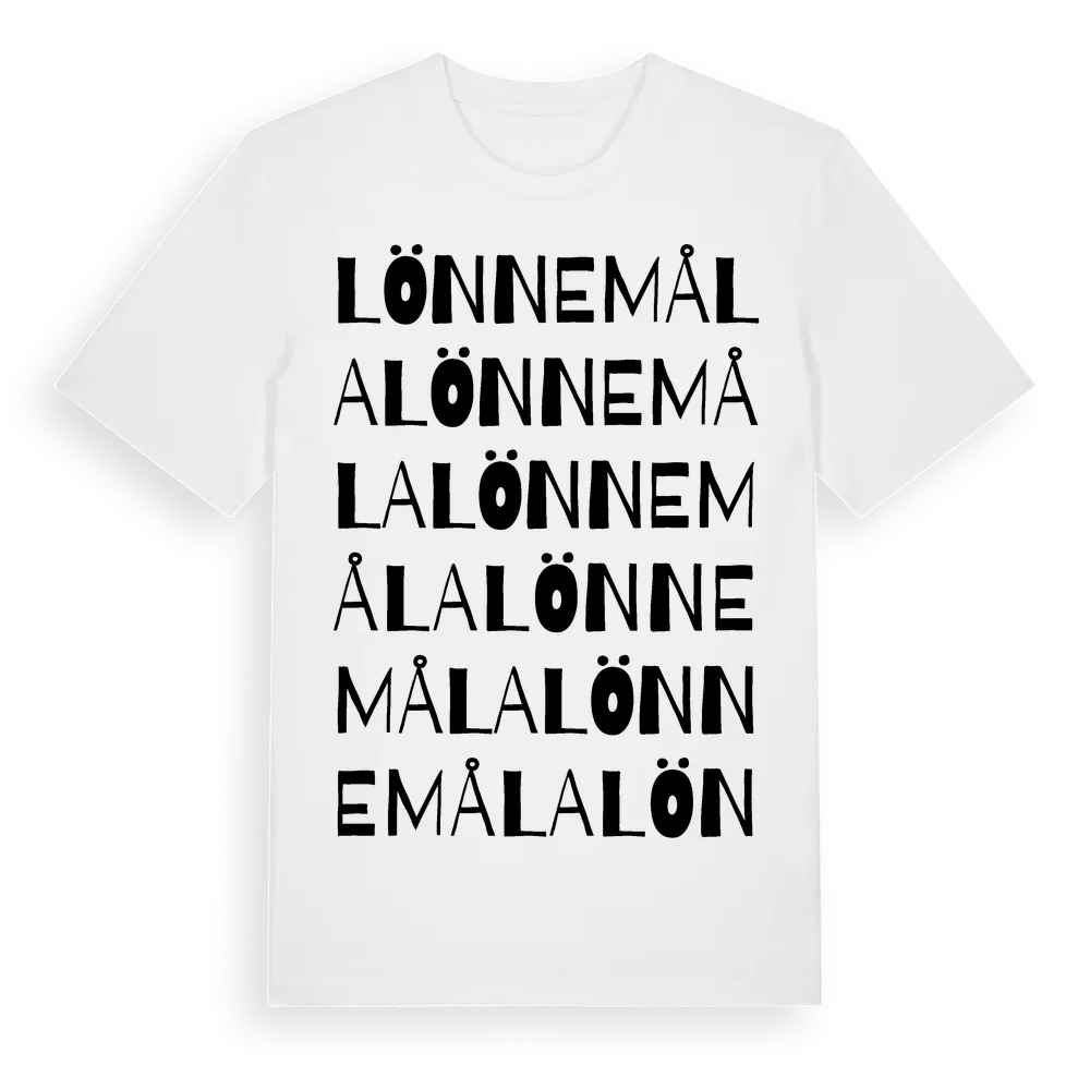 Lönnemåla ordlek t-shirt är inspirerad av byn Lönnemåla i Blekinge län, Sverige. Tröjan är designad för dig som har en speciell koppling till platsen – oavsett om du bor här, har rötterna här eller bara älskar Lönnemåla.
