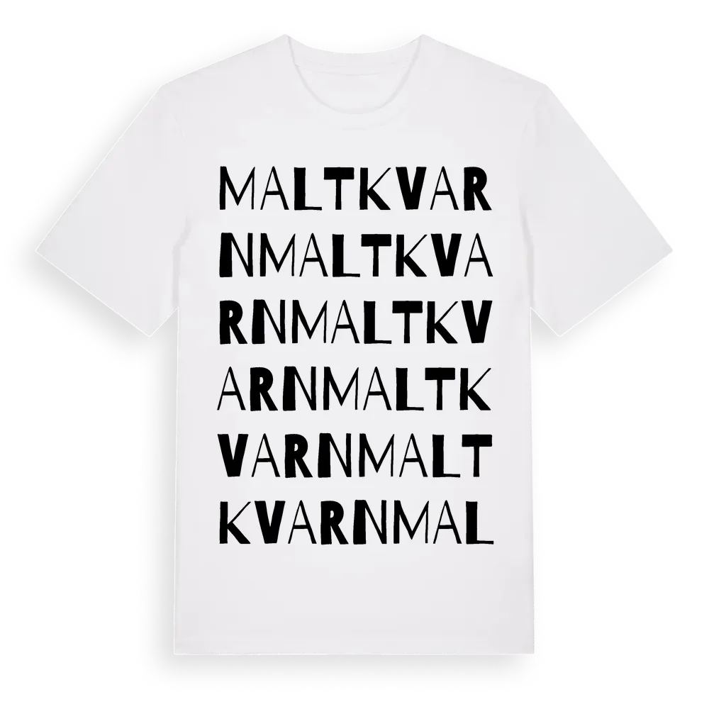 Maltkvarn ordlek t-shirt är inspirerad av ön Maltkvarn i Blekinge län, Sverige. Tröjan är designad för dig som har en speciell koppling till platsen – oavsett om du bor här, har rötterna här eller bara älskar Maltkvarn.