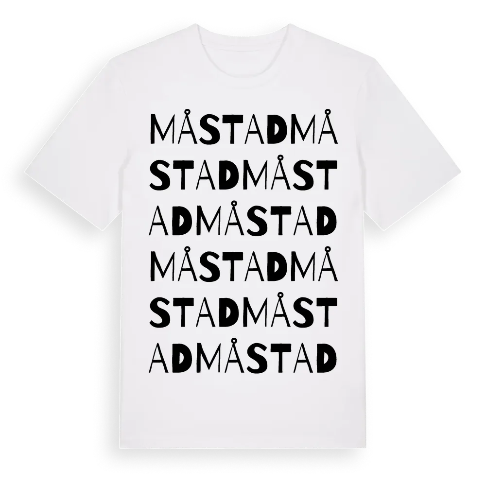 Måstad ordlek t-shirt är inspirerad av byn Måstad i Blekinge län, Sverige. Tröjan är designad för dig som har en speciell koppling till platsen – oavsett om du bor här, har rötterna här eller bara älskar Måstad.