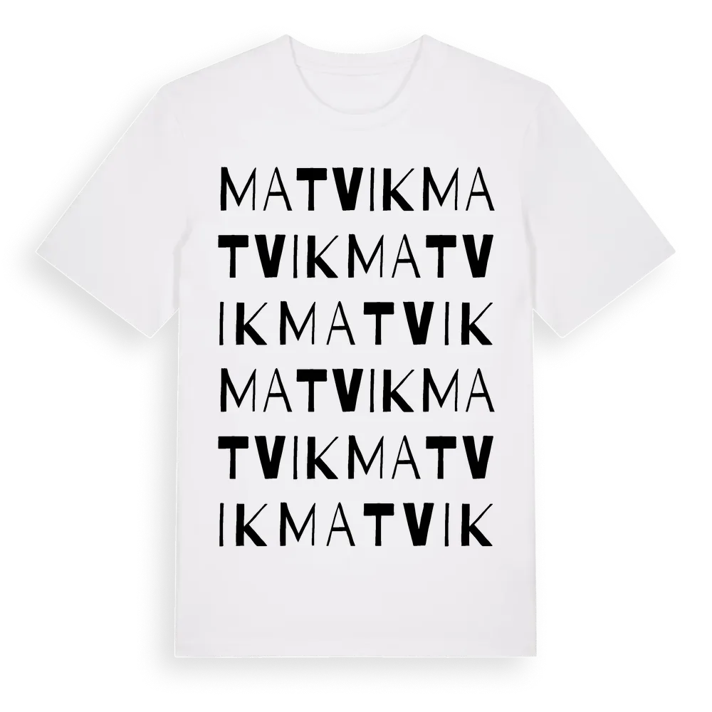 Matvik ordlek t-shirt är inspirerad av byn Matvik i Blekinge län, Sverige. Tröjan är designad för dig som har en speciell koppling till platsen – oavsett om du bor här, har rötterna här eller bara älskar Matvik.