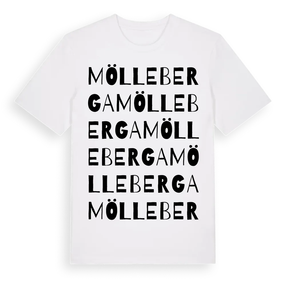 Mölleberga ordlek t-shirt är inspirerad av byn Mölleberga i Blekinge län, Sverige. Tröjan är designad för dig som har en speciell koppling till platsen – oavsett om du bor här, har rötterna här eller bara älskar Mölleberga.