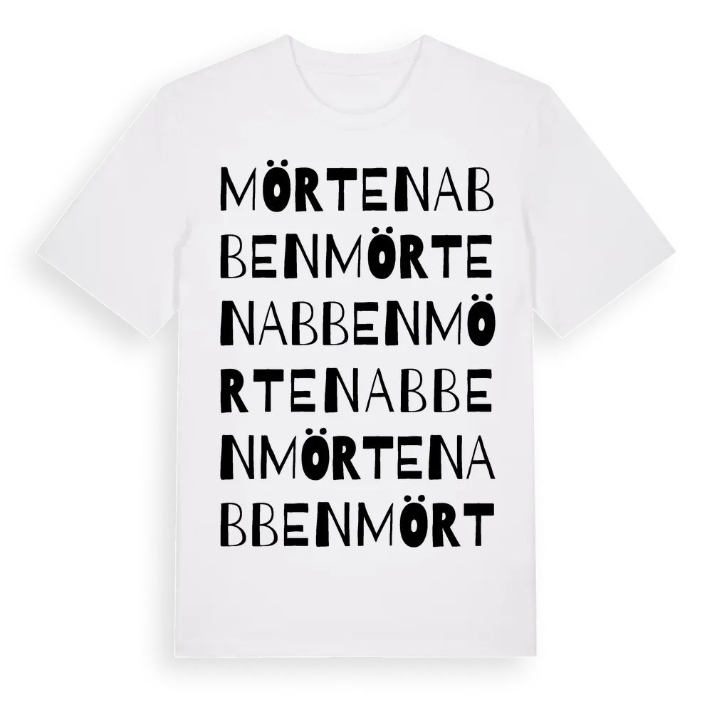 Mörtenabben ordlek t-shirt är inspirerad av Mörtenabben i Blekinge län, Sverige. Tröjan är designad för dig som har en speciell koppling till platsen – oavsett om du bor här, har rötterna här eller bara älskar Mörtenabben.