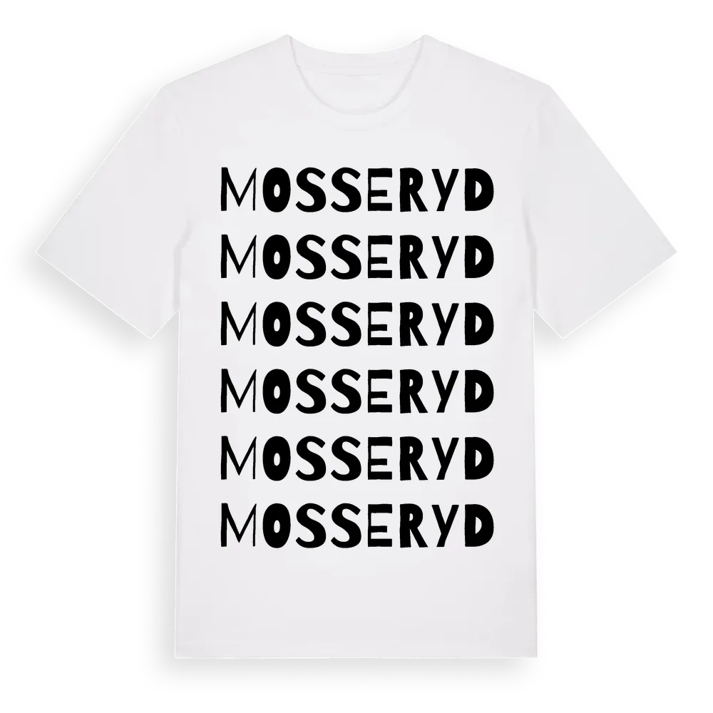 Mosseryd ordlek t-shirt är inspirerad av byn Mosseryd i Blekinge län, Sverige. Tröjan är designad för dig som har en speciell koppling till platsen – oavsett om du bor här, har rötterna här eller bara älskar Mosseryd.