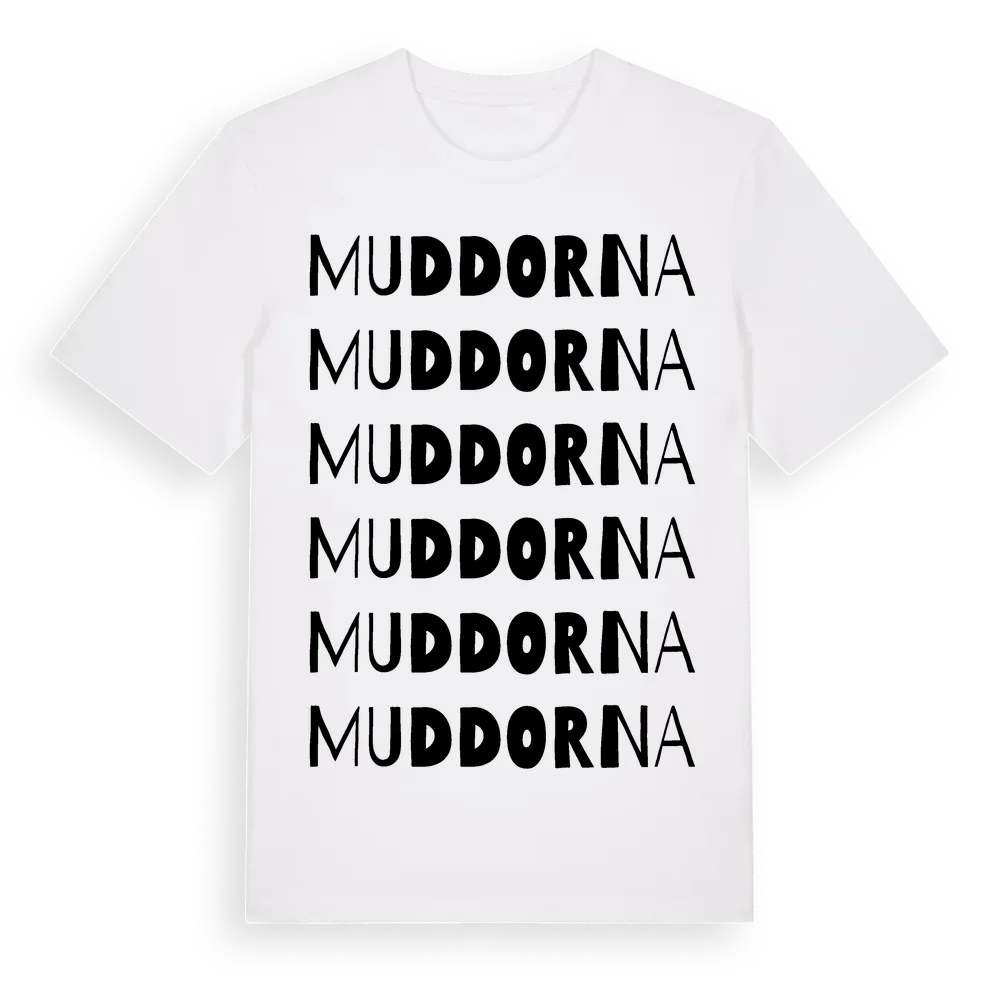 En ordlek byggd på Muddornas namn. Subtilt och klurig – ett motiv som bara de som verkligen känner platsen fullt ut förstår. Premium bomull, unisex – från Muddorna i Blekinge län.