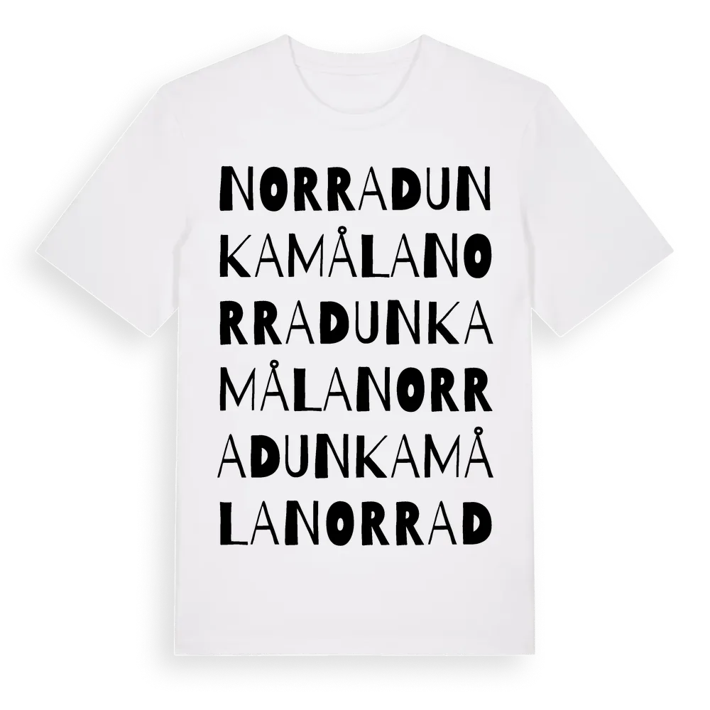 Norra Dunkamåla ordlek t-shirt är inspirerad av Norra Dunkamåla i Blekinge län, Sverige. Tröjan är designad för dig som har en speciell koppling till platsen – oavsett om du bor här, har rötterna här eller bara älskar Norra Dunkamåla.