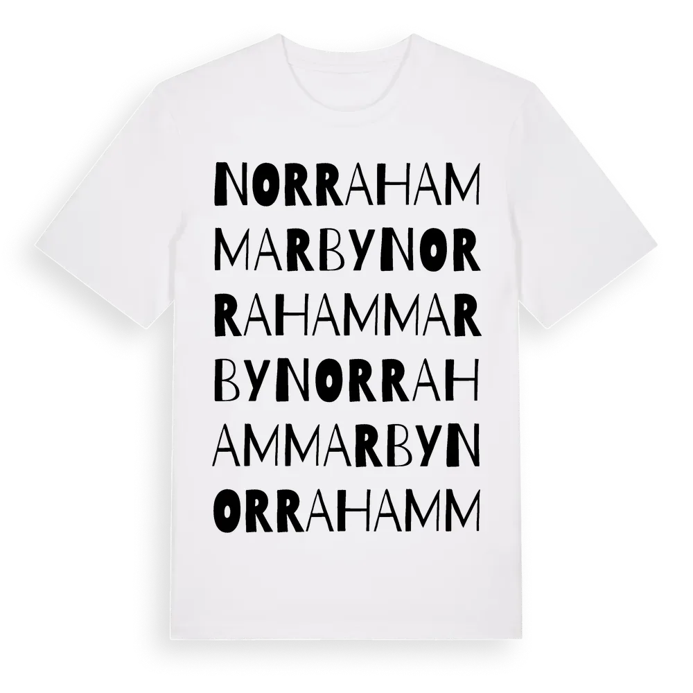 Norra Hammarby ordlek t-shirt är inspirerad av Norra Hammarby i Blekinge län, Sverige. Tröjan är designad för dig som har en speciell koppling till platsen – oavsett om du bor här, har rötterna här eller bara älskar Norra Hammarby.