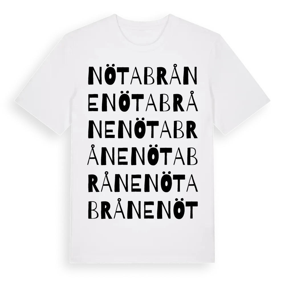 Nötabråne ordlek t-shirt är inspirerad av byn Nötabråne i Blekinge län, Sverige. Tröjan är designad för dig som har en speciell koppling till platsen – oavsett om du bor här, har rötterna här eller bara älskar Nötabråne.