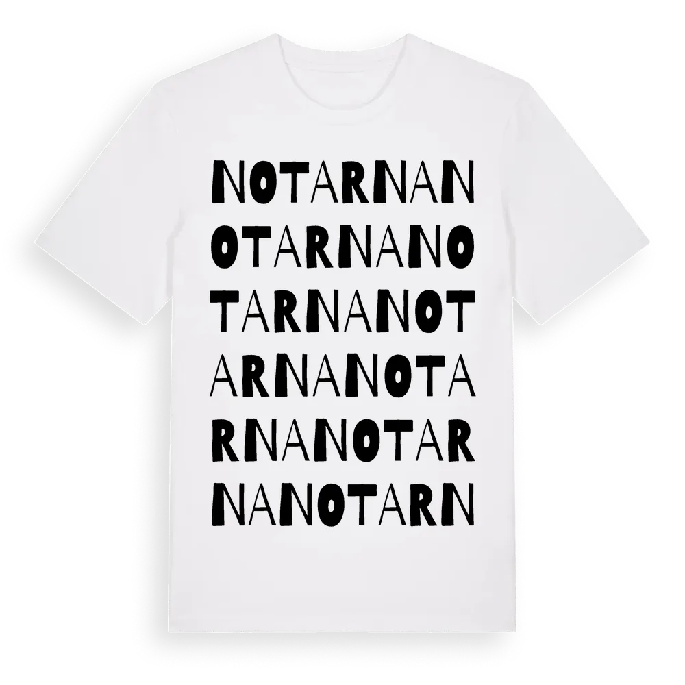 En ordlek byggd på Notarnas namn. Subtilt och klurig – ett motiv som bara de som verkligen känner platsen fullt ut förstår. Premium bomull, unisex – från Notarna i Blekinge län.