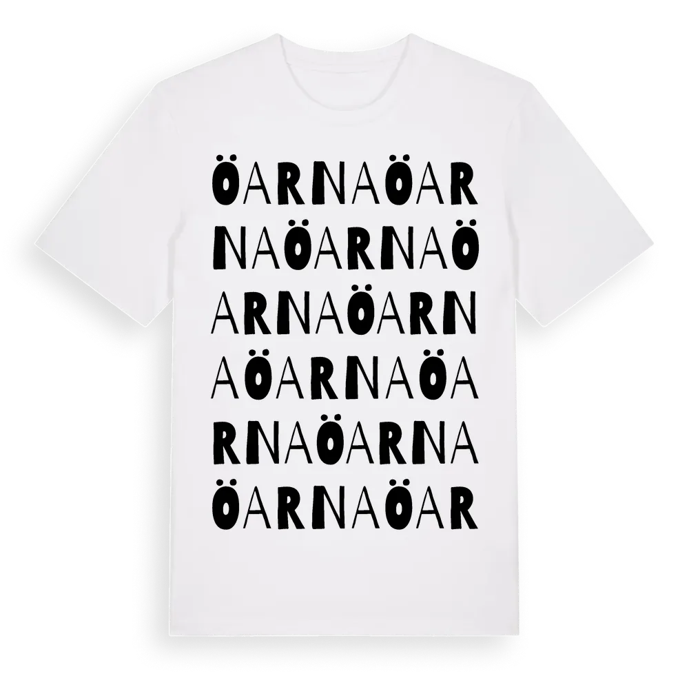 En ordlek byggd på Öarnas namn. Subtilt och klurig – ett motiv som bara de som verkligen känner platsen fullt ut förstår. Premium bomull, unisex – från Öarna i Blekinge län.