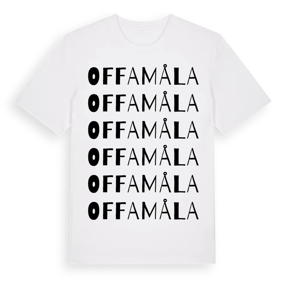 Offamåla ordlek t-shirt är inspirerad av byn Offamåla i Blekinge län, Sverige. Tröjan är designad för dig som har en speciell koppling till platsen – oavsett om du bor här, har rötterna här eller bara älskar Offamåla.