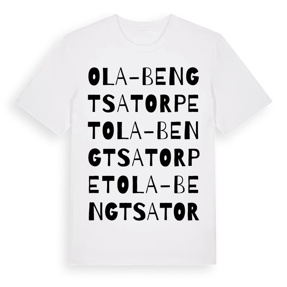 Ola-Bengtsatorpet ordlek t-shirt är inspirerad av Ola-Bengtsatorpet i Blekinge län, Sverige. Tröjan är designad för dig som har en speciell koppling till platsen – oavsett om du bor här, har rötterna här eller bara älskar Ola-Bengtsatorpet.