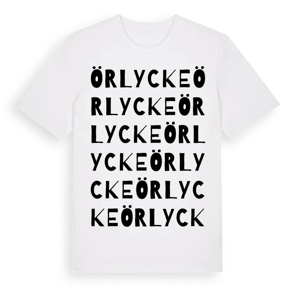 Örlycke ordlek t-shirt är inspirerad av byn Örlycke i Blekinge län, Sverige. Tröjan är designad för dig som har en speciell koppling till platsen – oavsett om du bor här, har rötterna här eller bara älskar Örlycke.