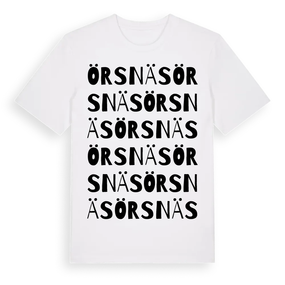 Örsnäs ordlek t-shirt är inspirerad av Örsnäs i Blekinge län, Sverige. Tröjan är designad för dig som har en speciell koppling till platsen – oavsett om du bor här, har rötterna här eller bara älskar Örsnäs.