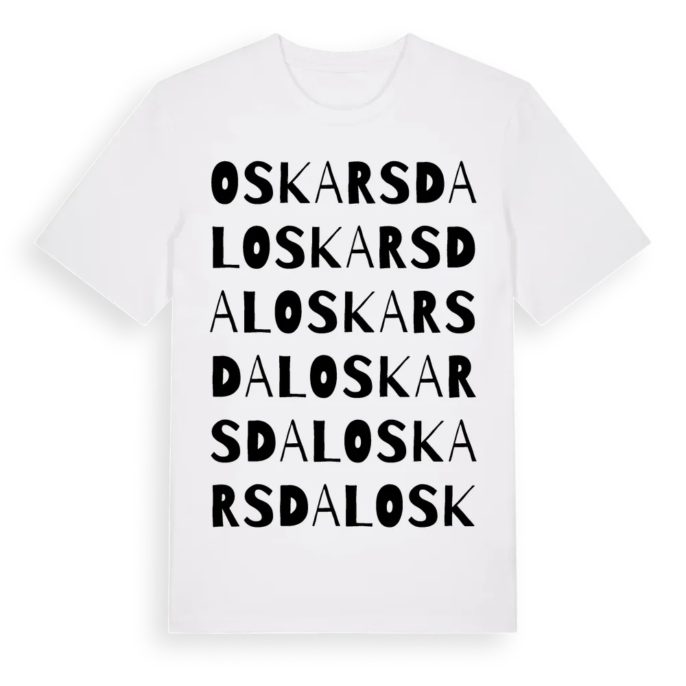 Oskarsdal ordlek t-shirt är inspirerad av Oskarsdal i Blekinge län, Sverige. Tröjan är designad för dig som har en speciell koppling till platsen – oavsett om du bor här, har rötterna här eller bara älskar Oskarsdal.
