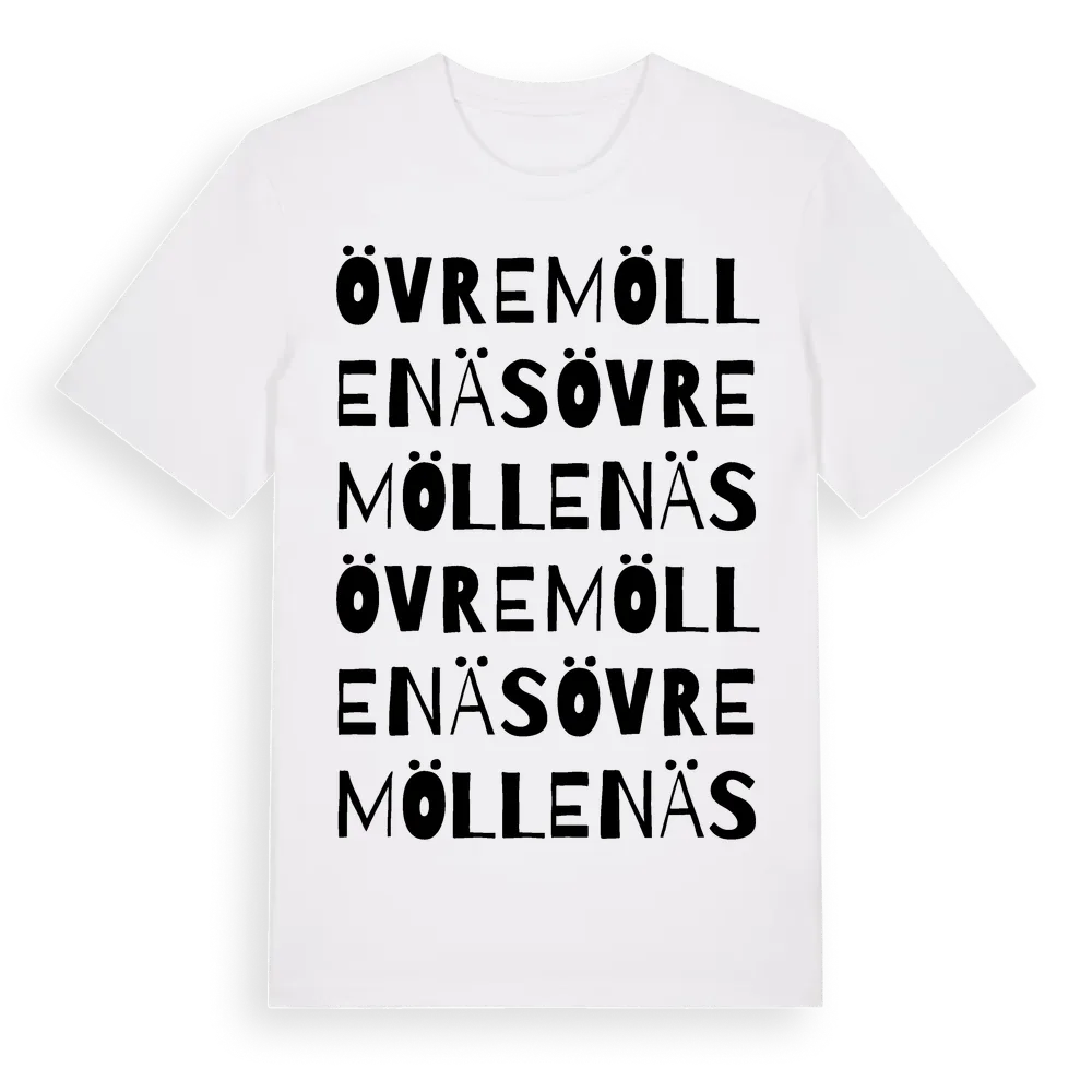Övre Möllenäs ordlek t-shirt är inspirerad av Övre Möllenäs i Blekinge län, Sverige. Tröjan är designad för dig som har en speciell koppling till platsen – oavsett om du bor här, har rötterna här eller bara älskar Övre Möllenäs.