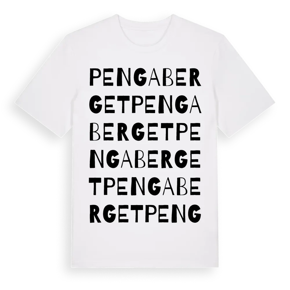 Pengaberget ordlek t-shirt är inspirerad av stadsdelen Pengaberget i Blekinge län, Sverige. Tröjan är designad för dig som har en speciell koppling till platsen – oavsett om du bor här, har rötterna här eller bara älskar Pengaberget.