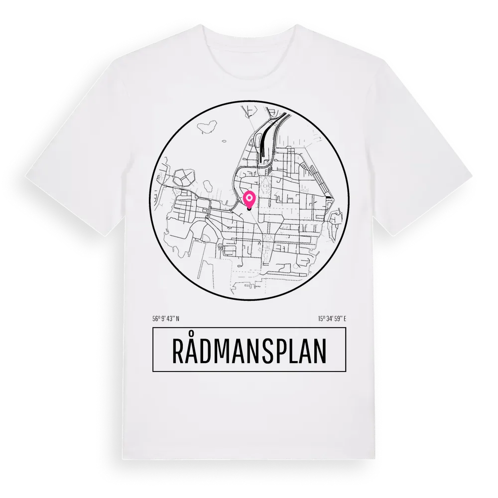 Rådmansplan t-shirt är inspirerad av Rådmansplan i Blekinge län, Sverige. Tröjan är designad för dig som har en speciell koppling till platsen – oavsett om du bor här, har rötterna här eller bara älskar Rådmansplan.