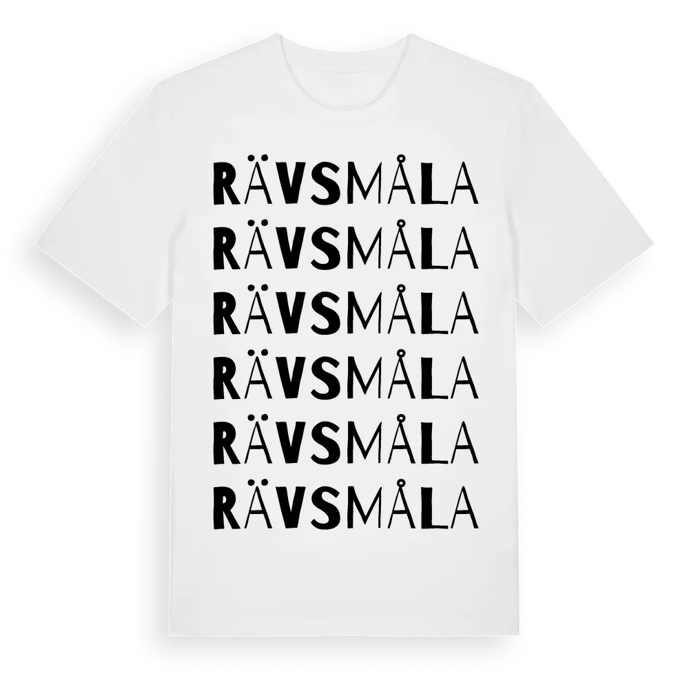Rävsmåla ordlek t-shirt är inspirerad av byn Rävsmåla i Blekinge län, Sverige. Tröjan är designad för dig som har en speciell koppling till platsen – oavsett om du bor här, har rötterna här eller bara älskar Rävsmåla.
