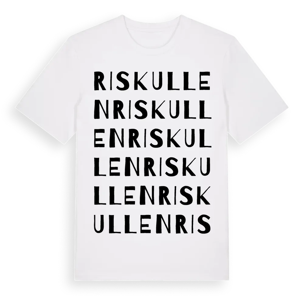 En ordlek byggd på Riskullens namn. Subtilt och klurig – ett motiv som bara de som verkligen känner platsen fullt ut förstår. Premium bomull, unisex – från Riskullen i Blekinge län.