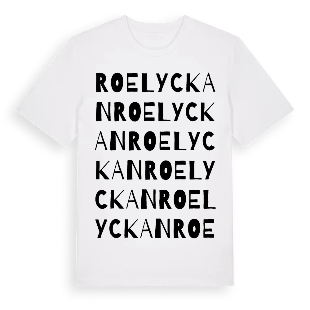 Roelyckan ordlek t-shirt är inspirerad av Roelyckan i Blekinge län, Sverige. Tröjan är designad för dig som har en speciell koppling till platsen – oavsett om du bor här, har rötterna här eller bara älskar Roelyckan.