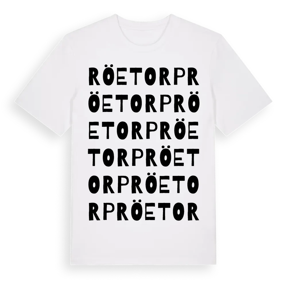 Röetorp ordlek t-shirt är inspirerad av Röetorp i Blekinge län, Sverige. Tröjan är designad för dig som har en speciell koppling till platsen – oavsett om du bor här, har rötterna här eller bara älskar Röetorp.