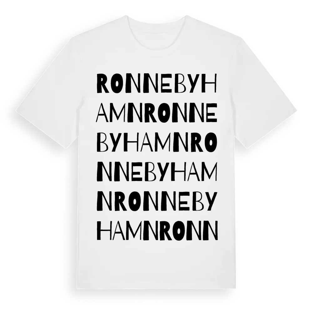 En ordlek byggd på Ronnebyhamns namn. Subtilt och klurig – ett motiv som bara de som verkligen känner platsen fullt ut förstår. Premium bomull, unisex – från byn Ronnebyhamn i Blekinge län.