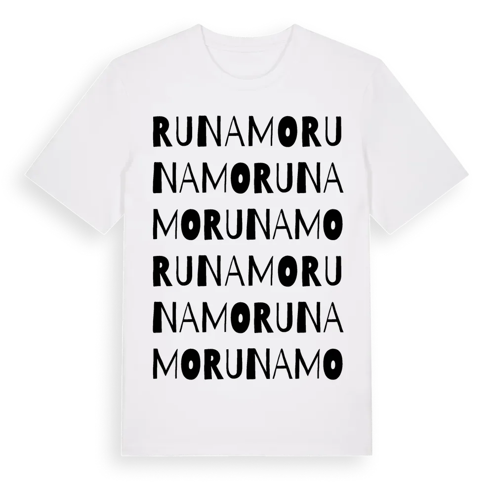 En ordlek byggd på Runamos namn. Subtilt och klurig – ett motiv som bara de som verkligen känner platsen fullt ut förstår. Premium bomull, unisex – från byn Runamo i Blekinge län.