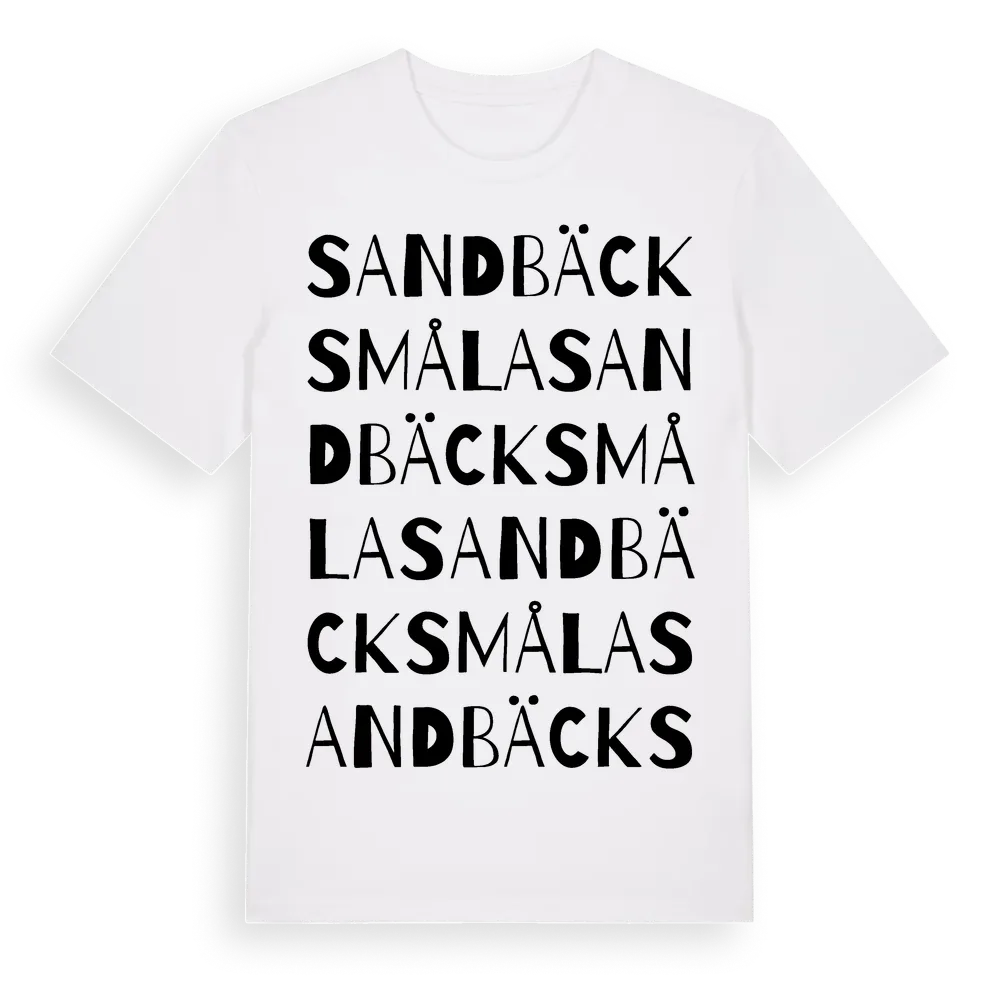 Sandbäcksmåla ordlek t-shirt är inspirerad av Sandbäcksmåla i Blekinge län, Sverige. Tröjan är designad för dig som har en speciell koppling till platsen – oavsett om du bor här, har rötterna här eller bara älskar Sandbäcksmåla.