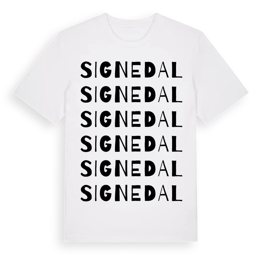 Signedal ordlek t-shirt är inspirerad av Signedal i Blekinge län, Sverige. Tröjan är designad för dig som har en speciell koppling till platsen – oavsett om du bor här, har rötterna här eller bara älskar Signedal.
