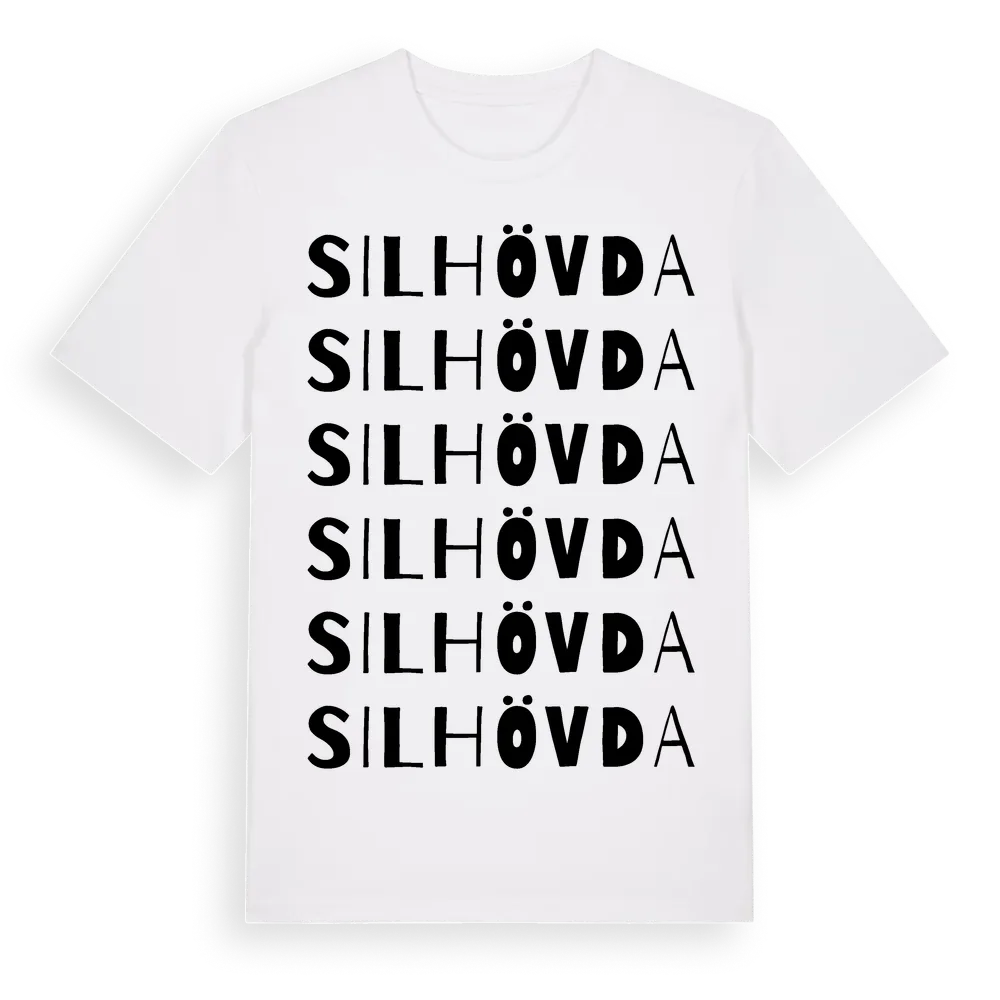 Silhövda ordlek t-shirt är inspirerad av byn Silhövda i Blekinge län, Sverige. Tröjan är designad för dig som har en speciell koppling till platsen – oavsett om du bor här, har rötterna här eller bara älskar Silhövda.