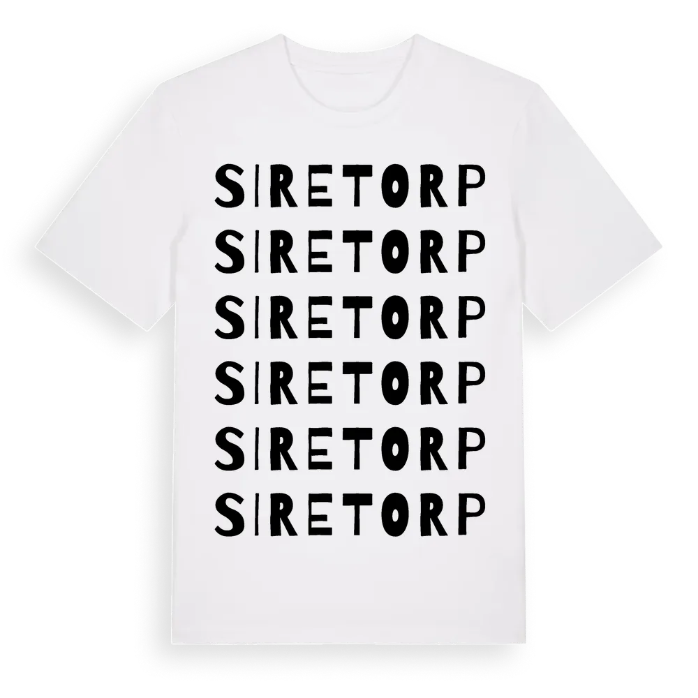 Siretorp ordlek t-shirt är inspirerad av byn Siretorp i Blekinge län, Sverige. Tröjan är designad för dig som har en speciell koppling till platsen – oavsett om du bor här, har rötterna här eller bara älskar Siretorp.