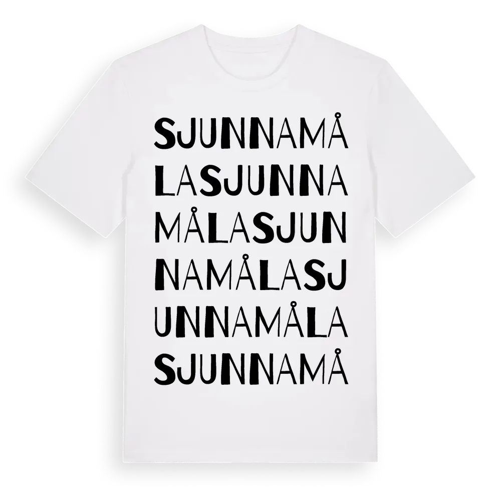 Sjunnamåla ordlek t-shirt är inspirerad av byn Sjunnamåla i Blekinge län, Sverige. Tröjan är designad för dig som har en speciell koppling till platsen – oavsett om du bor här, har rötterna här eller bara älskar Sjunnamåla.