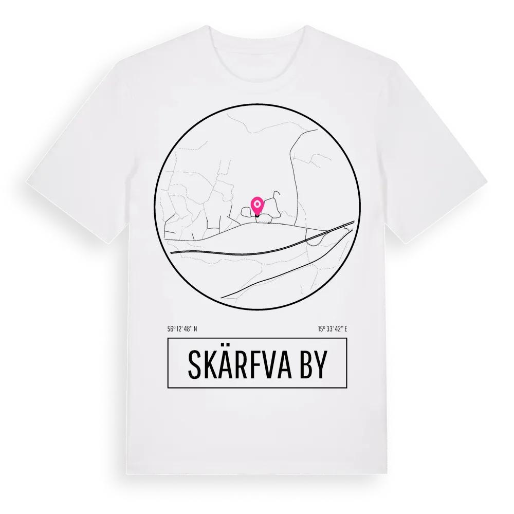 Skärfva By t-shirt är inspirerad av stadsdelen Skärfva By i Blekinge län, Sverige. Tröjan är designad för dig som har en speciell koppling till platsen – oavsett om du bor här, har rötterna här eller bara älskar Skärfva By.