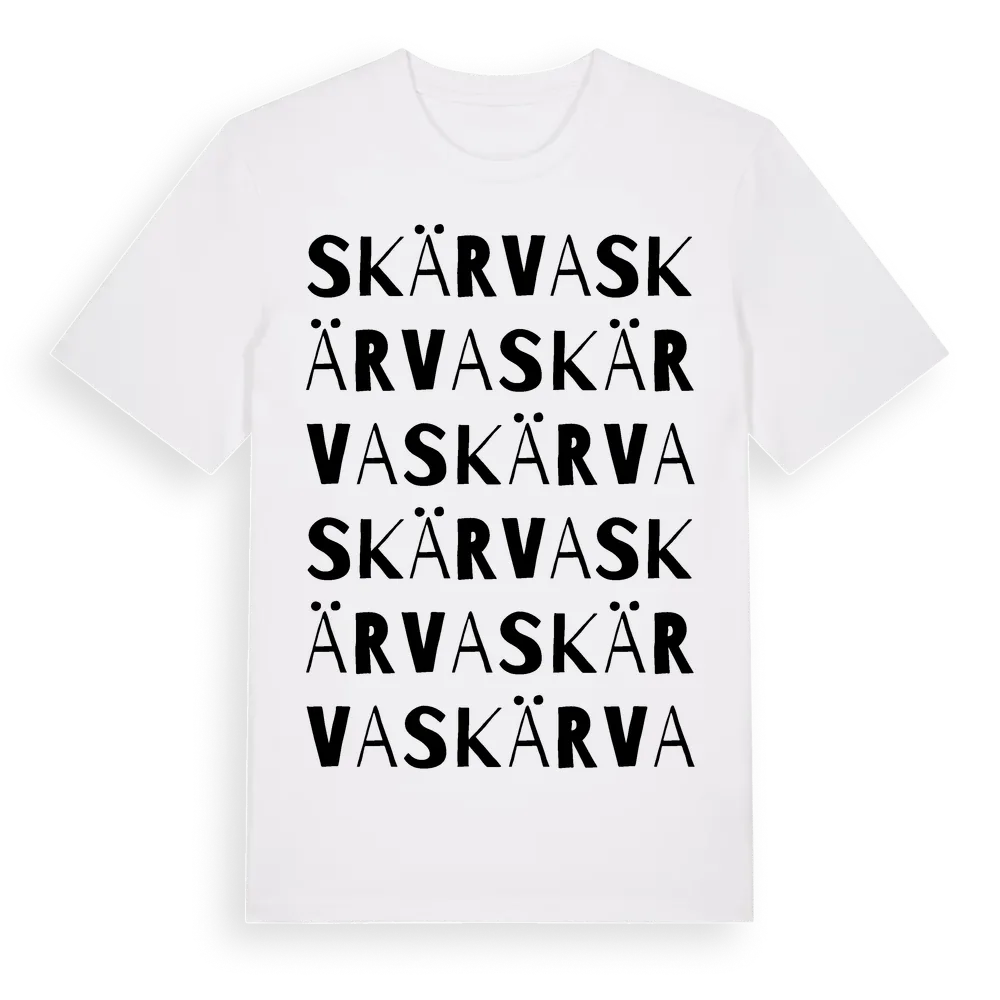 Skärva ordlek t-shirt är inspirerad av Skärva i Blekinge län, Sverige. Tröjan är designad för dig som har en speciell koppling till platsen – oavsett om du bor här, har rötterna här eller bara älskar Skärva.