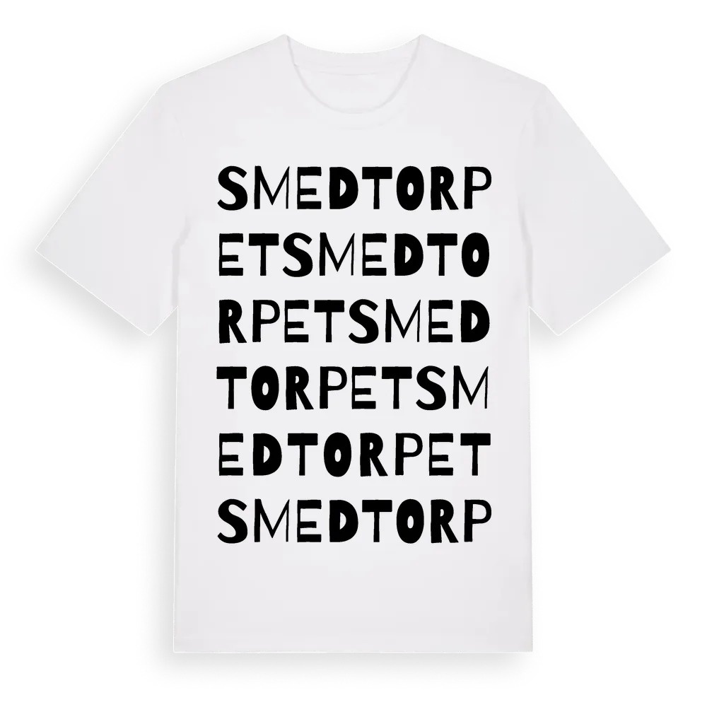 Smedtorpet ordlek t-shirt är inspirerad av Smedtorpet i Blekinge län, Sverige. Tröjan är designad för dig som har en speciell koppling till platsen – oavsett om du bor här, har rötterna här eller bara älskar Smedtorpet.