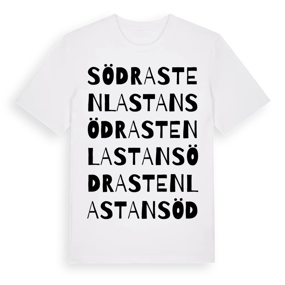 Södra Stenlastan ordlek t-shirt är inspirerad av Södra Stenlastan i Blekinge län, Sverige. Tröjan är designad för dig som har en speciell koppling till platsen – oavsett om du bor här, har rötterna här eller bara älskar Södra Stenlastan.