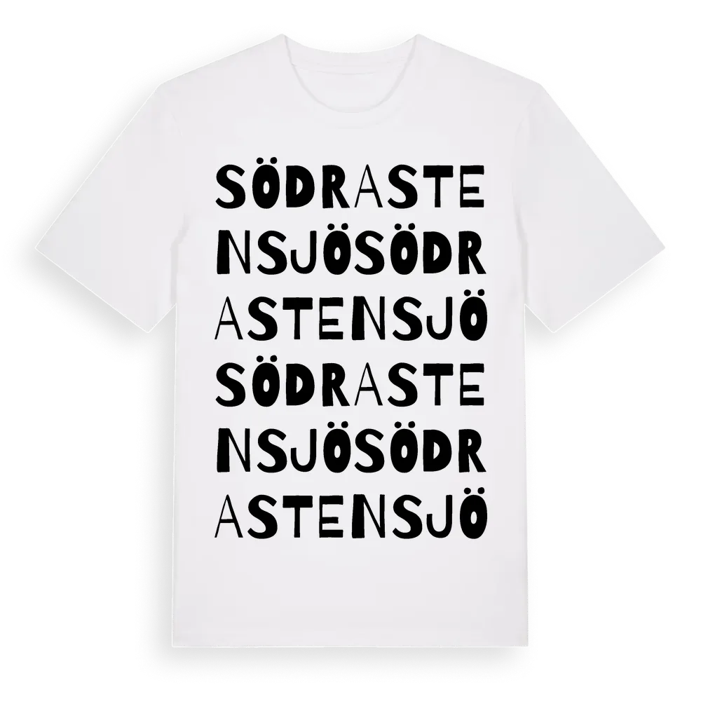 Södra Stensjö ordlek t-shirt är inspirerad av byn Södra Stensjö i Blekinge län, Sverige. Tröjan är designad för dig som har en speciell koppling till platsen – oavsett om du bor här, har rötterna här eller bara älskar Södra Stensjö.