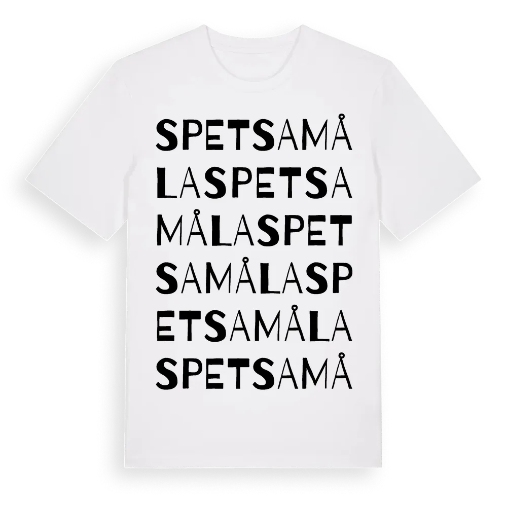 Spetsamåla ordlek t-shirt är inspirerad av byn Spetsamåla i Blekinge län, Sverige. Tröjan är designad för dig som har en speciell koppling till platsen – oavsett om du bor här, har rötterna här eller bara älskar Spetsamåla.